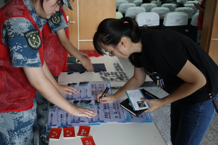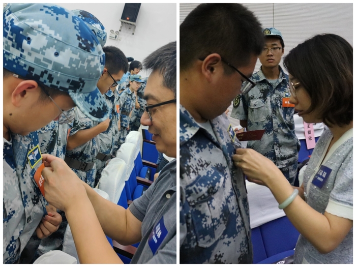 院党委书记许静为2022级新生代表们佩戴院徽,同学们正式解锁“南航数学人”新身份。