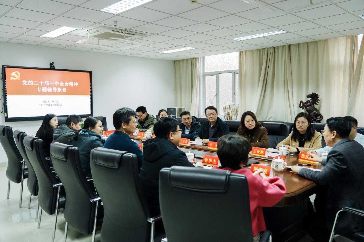 南京师范大学党委常委、宣传部部长宋喆作《学习贯彻党的二十届三中全会精神》辅导报告。他指出,要深刻领会教育、科技、人才在强国建设、民族复兴伟业中的重要战略地位,深刻认识到改革创新是“双一流”建设中的关键一招和根本动力。本次两校两学院联学共建,是深化落实南京师范大学以校地、校企、校校、校所、国际化“五大合作”推进教育科技人才一体化发展的具体实践,希望双方单位能够充分发挥数学基础学科价值,以党务联建协同破解高校基层党建工作难点,逐步扩大党建联盟实效和质效,以资源聚集助力高校数学学科发展。