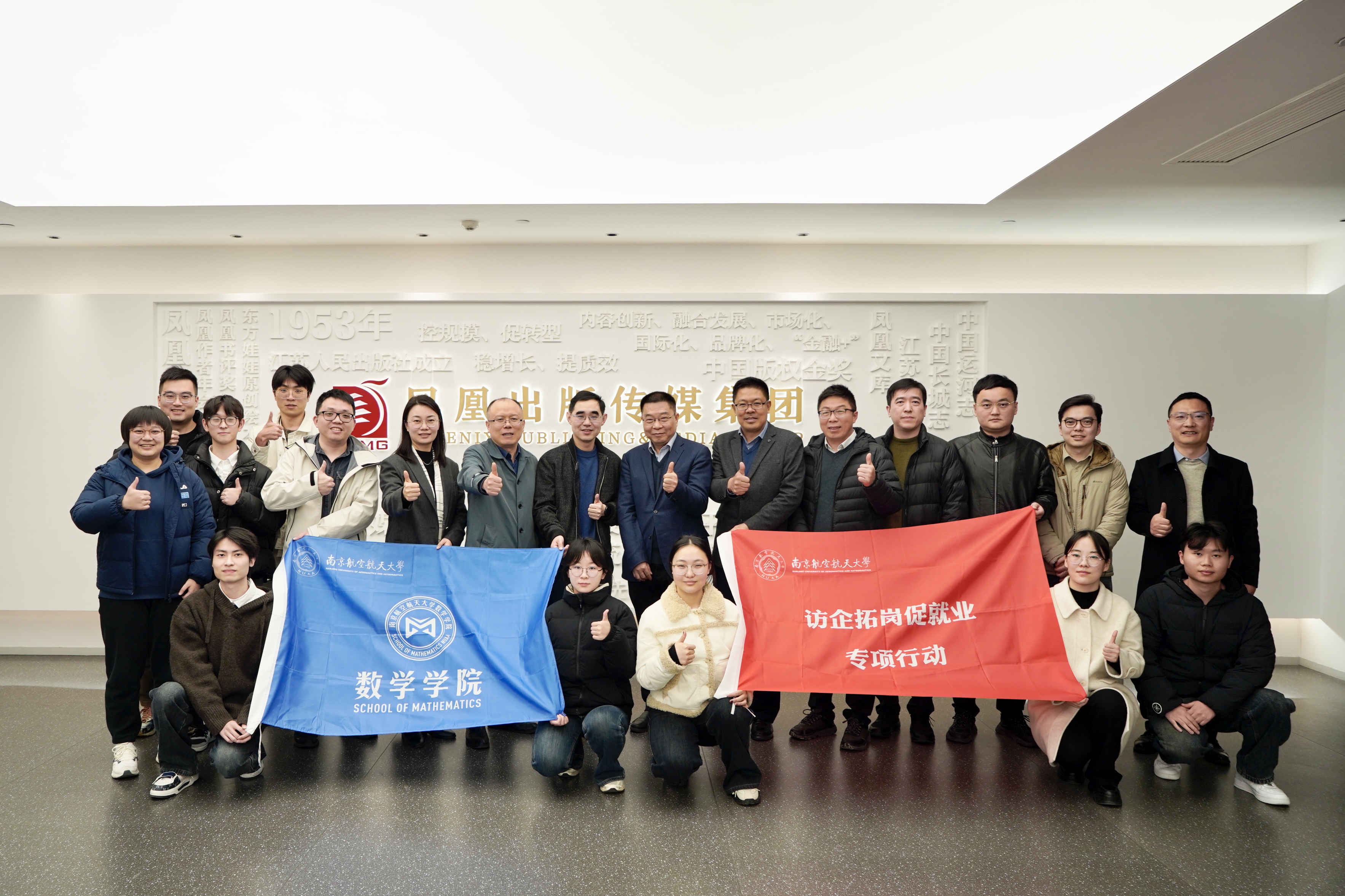 为精准对接用人单位人才需求,拓宽学生实习就业渠道,12月5日,金年会jinnianhuicom党委书记张跃带队,党委副书记王亚鹏、计算科学系教师范川、概率统计系教师王炜、辅导员刘思佳及本研学生代表共10余人,赴凤凰出版传媒集团开展访企拓岗促就业专项行动。
