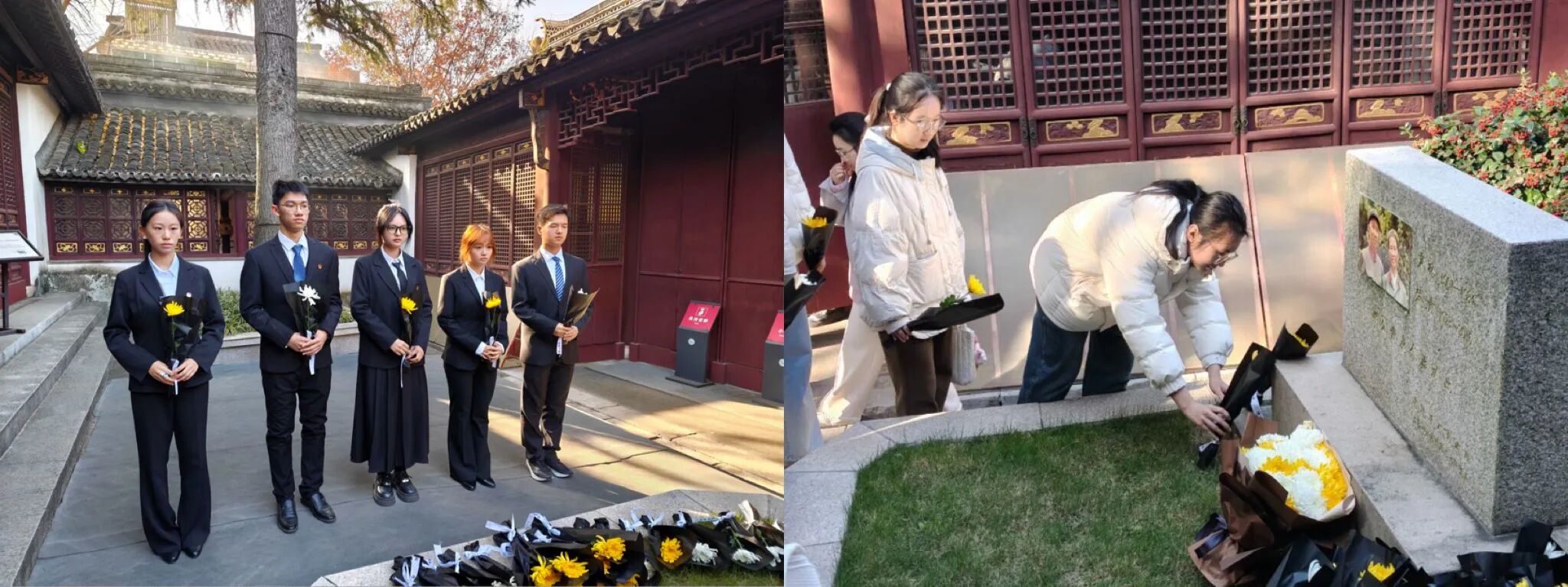在粟裕大将与楚青同志合葬墓前,团员代表缓步上前,郑重献上鲜花,全体人员鞠躬致敬,缅怀革命先辈为民族解放事业作出的卓越贡献,感悟他们舍生取义、廉洁奉公的崇高风范。
